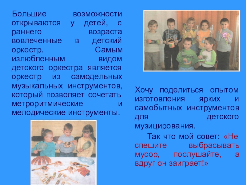 Хочу поделиться опытом изготовления ярких и самобытных инструментов для детского музицирования.