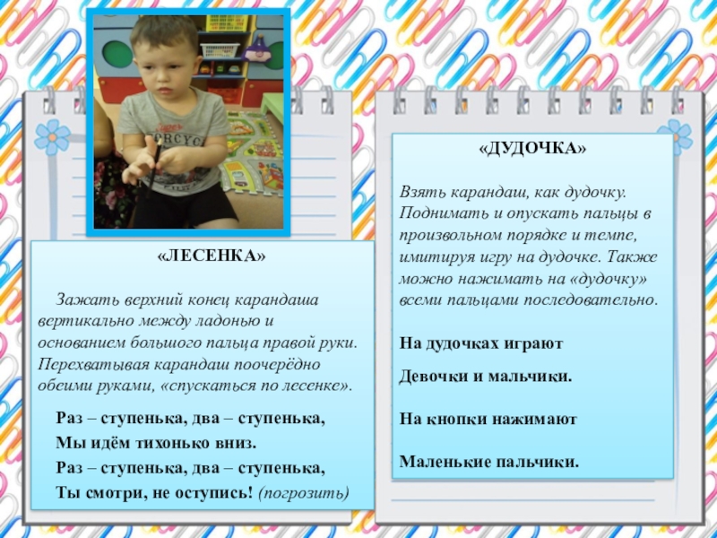 Взять карандаш, как дудочку. Поднимать и опускать пальцы в