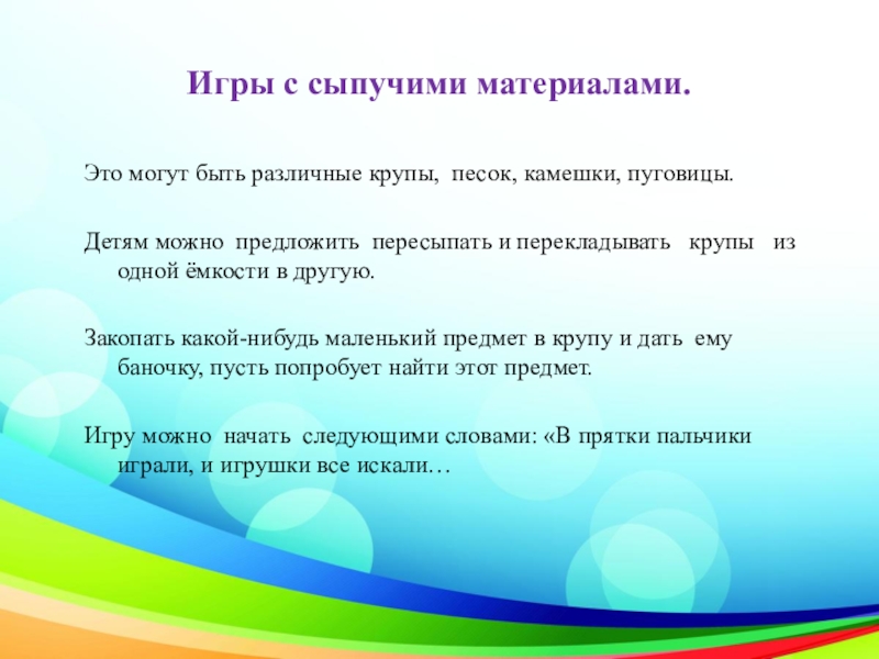 Детям можно предложить пересыпать и перекладывать крупы из одной ёмкости в другую.