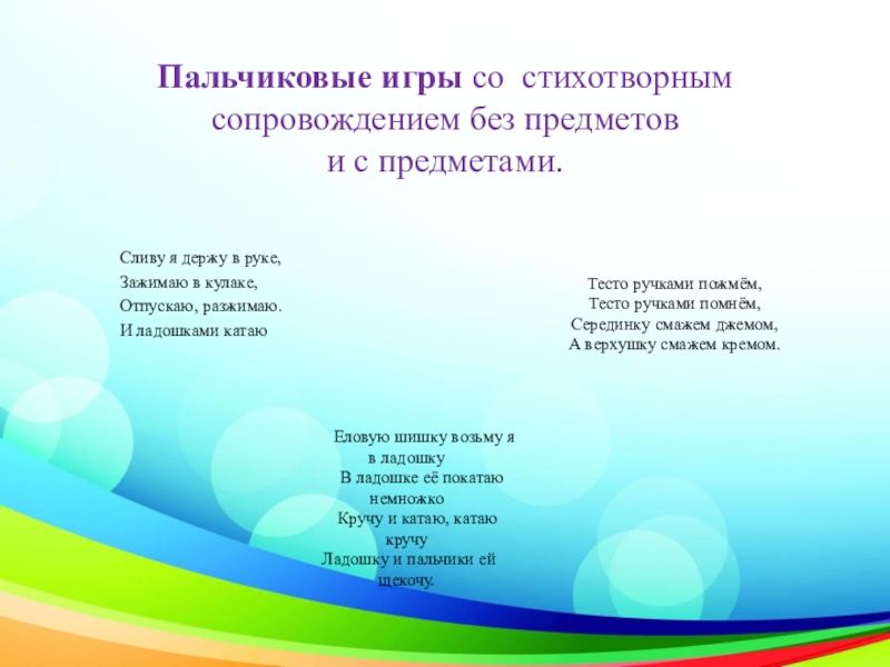 Слайд 5Пальчиковые игры со стихотворным сопровождением без предметов