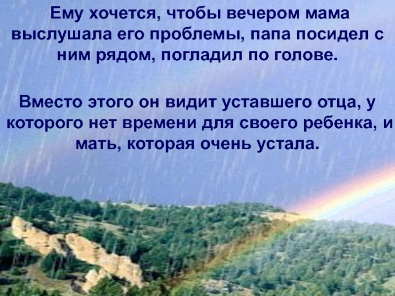 Вместо этого он видит уставшего отца, у которого нет времени для своего ребенка, и мать, которая очень устала.