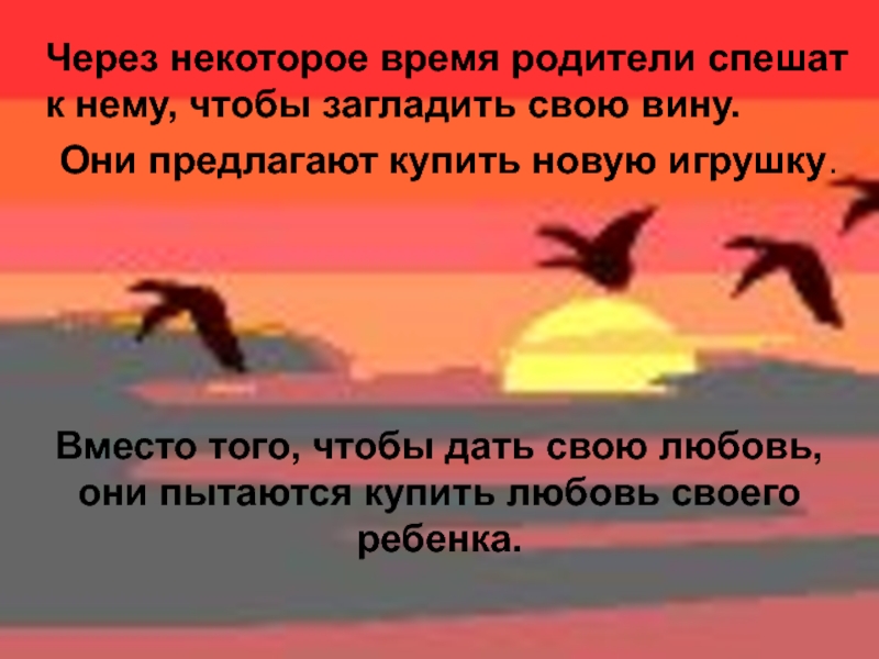 Через некоторое время родители спешат к нему, чтобы загладить свою вину.
