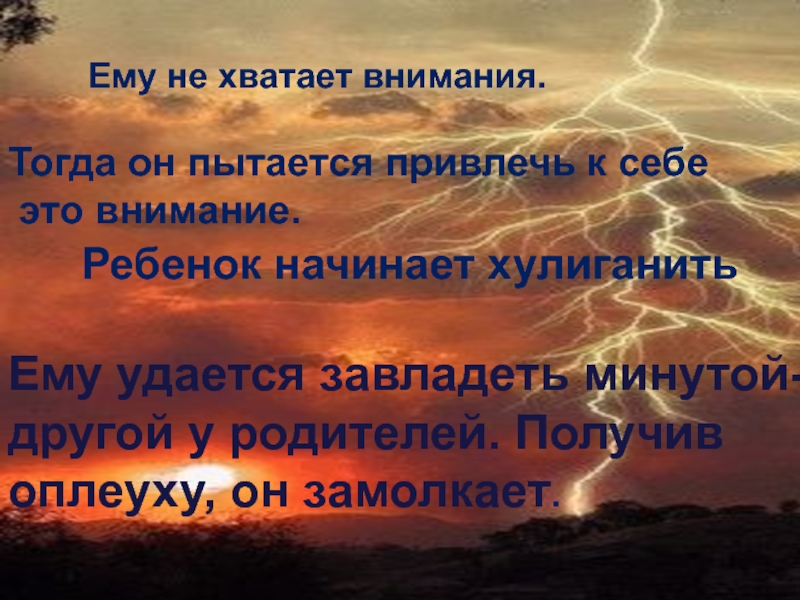 Ему удается завладеть минутой-другой у родителей. Получив оплеуху, он замолкает.