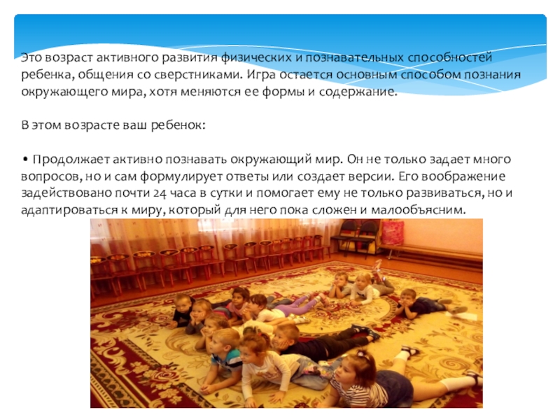 • Очень хочет походить на значимых для него взрослых, поэтому любит играть во «взрослые дела» и другие социальные игры. Продолжительность игр может быть уже достаточно существенной.