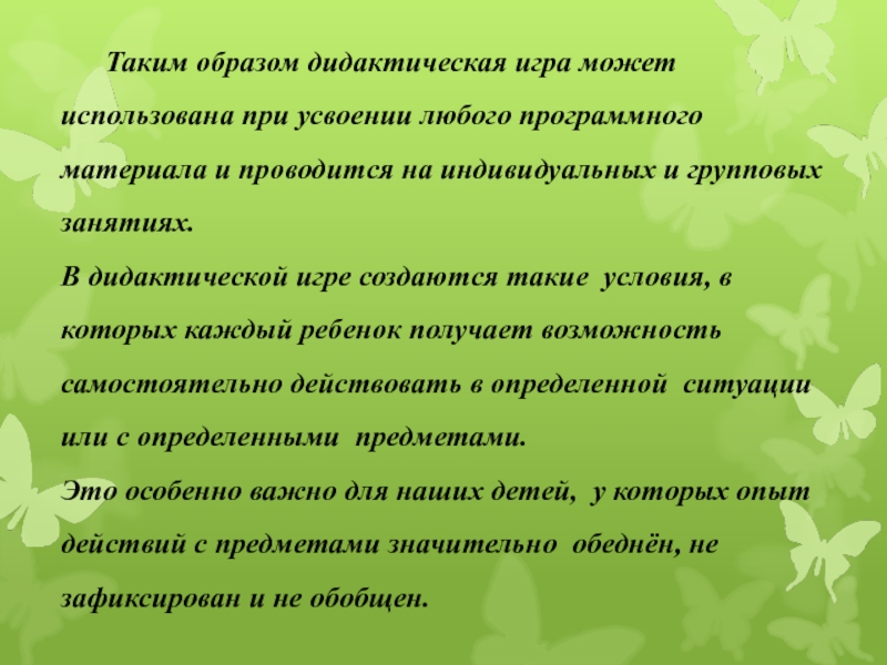 Таким образом дидактическая игра может использована при усвоении любого программного