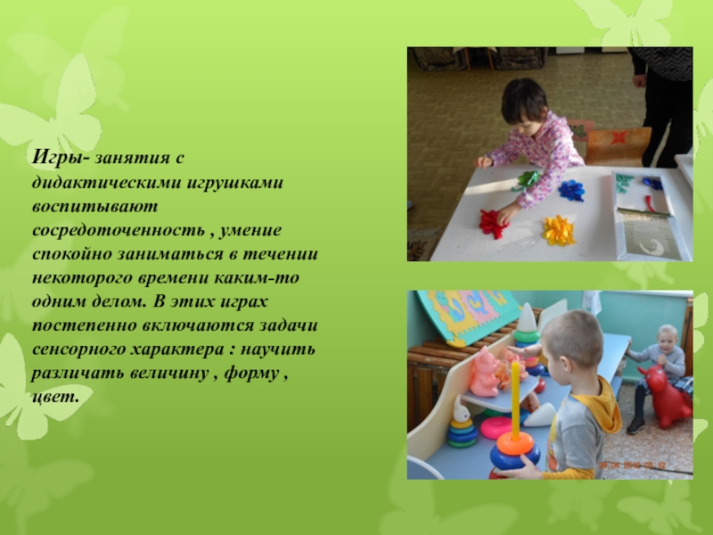 Игры- занятия с дидактическими игрушками воспитывают сосредоточенность , умение спокойно заниматься