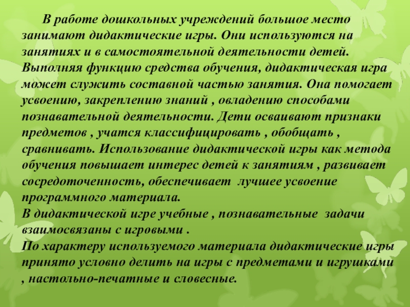 В работе дошкольных учреждений большое место занимают дидактические игры. Они используются