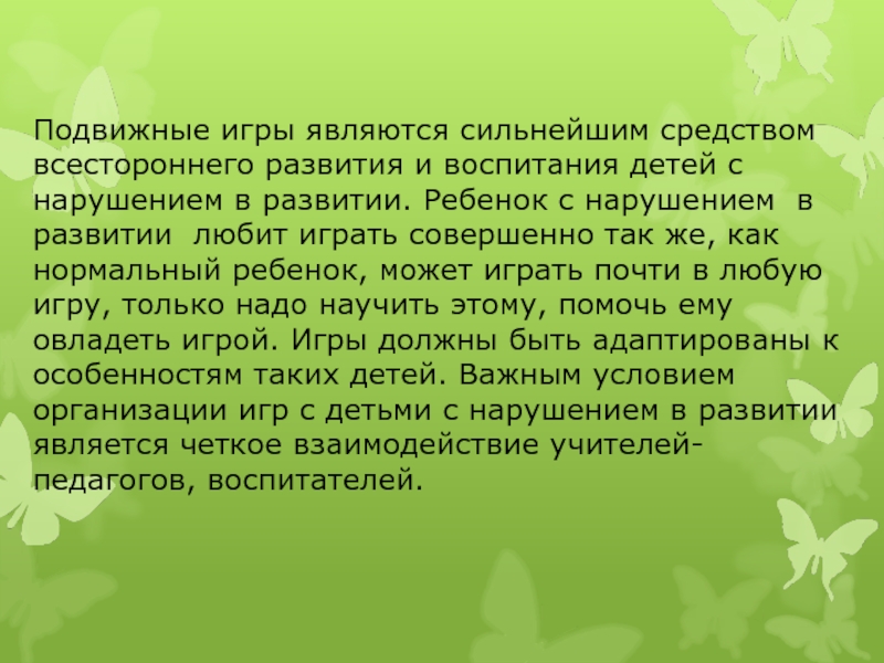 Слайд 20Подвижные игры являются сильнейшим средством всестороннего развития и воспитания детей с