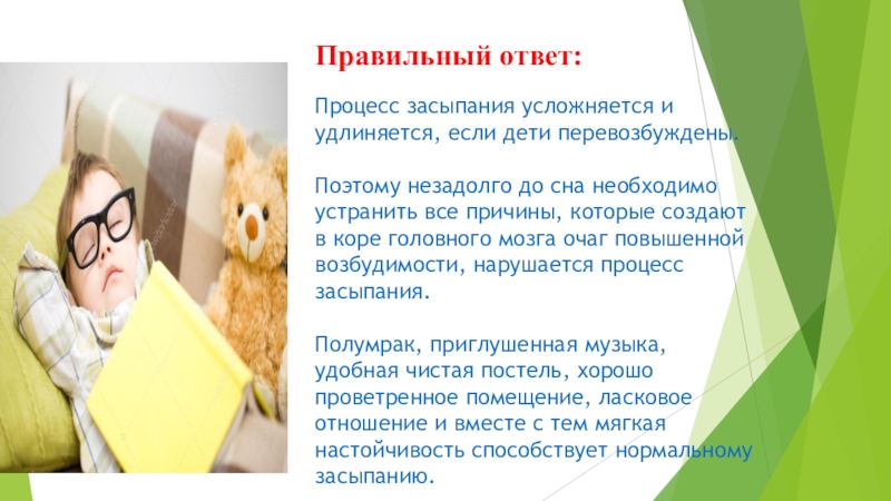 Процесс засыпания усложняется и удлиняется, если дети перевозбуждены.