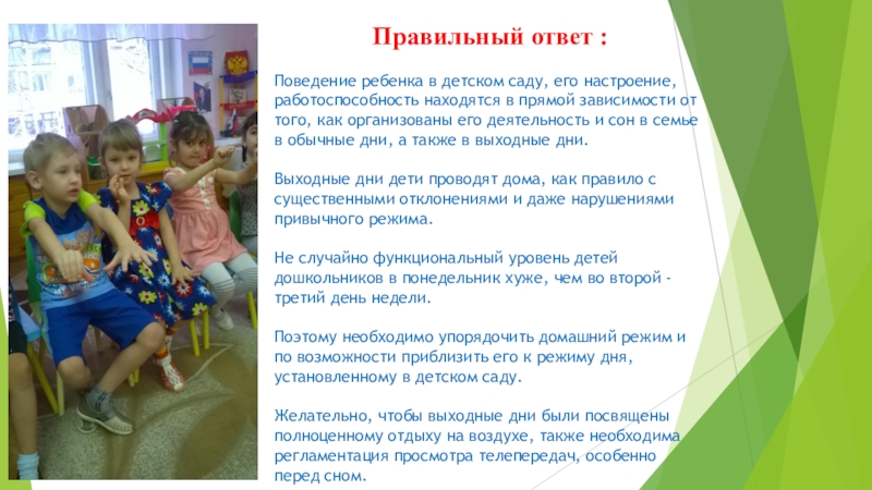 Поведение ребенка в детском саду, его настроение, работоспособность находятся