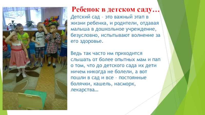 ребенка, и родители, отдавая малыша в дошкольное учреждение, безусловно, испытывают волнение за его здоровье.