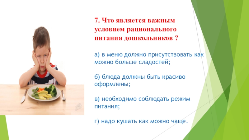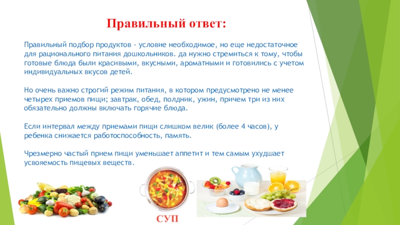 Слайд 177. Что является важным условием рационального питания дошкольников ?