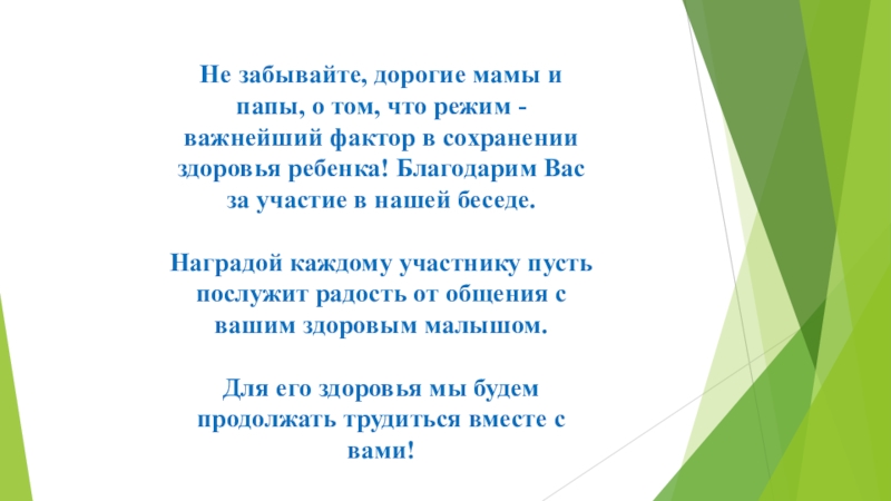 Слайд 23Не забывайте, дорогие мамы и папы, о том, что режим -