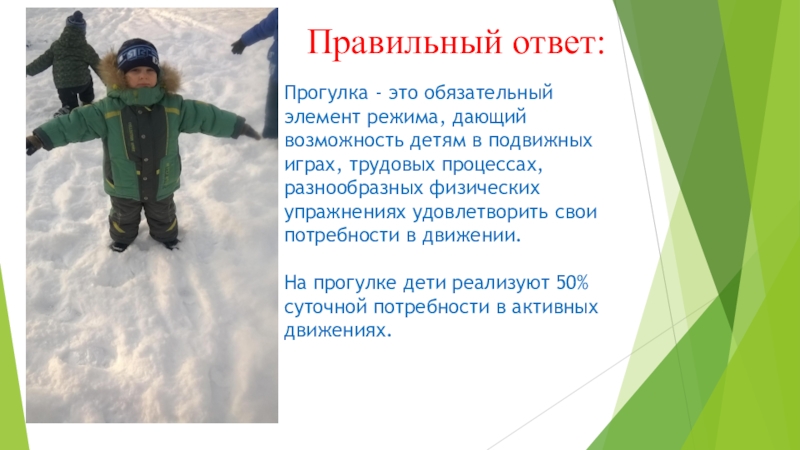 Прогулка - это обязательный элемент режима, дающий возможность детям в