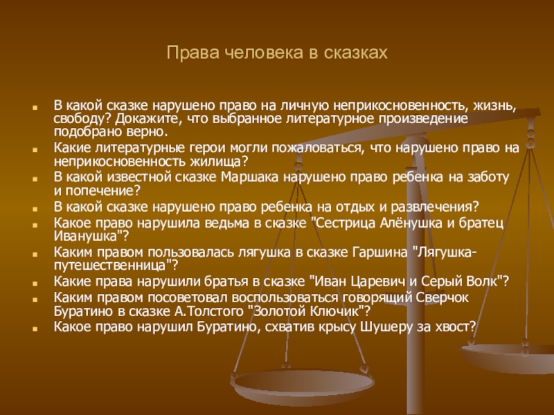 Какие права нарушили братья в сказке "Иван Царевич и Серый Волк"?