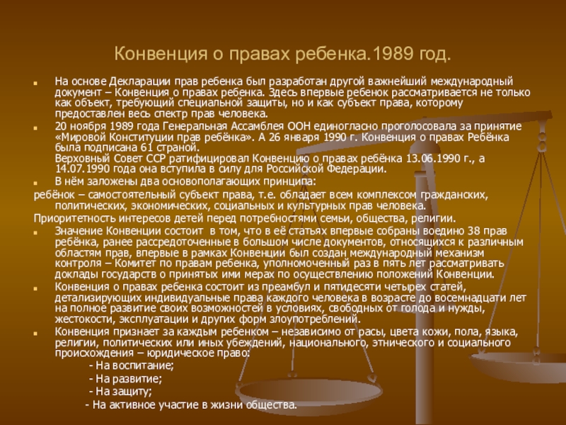 Слайд 5Конвенция о правах ребенка.1989 год.