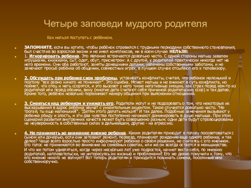 ЗАПОМНИТЕ, если вы хотите, чтобы ребёнок справился с трудными периодами собственного становления, был счастлив во взрослой жизни и не имел комплексов, ни в коем случае НЕЛЬЗЯ: