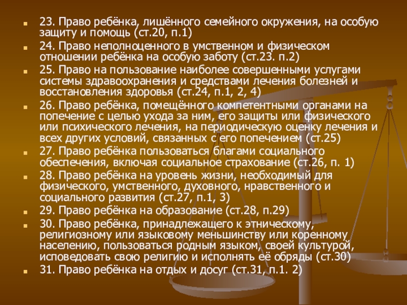 24. Право неполноценного в умственном и физическом отношении ребёнка на особую заботу (ст.23. п.2)