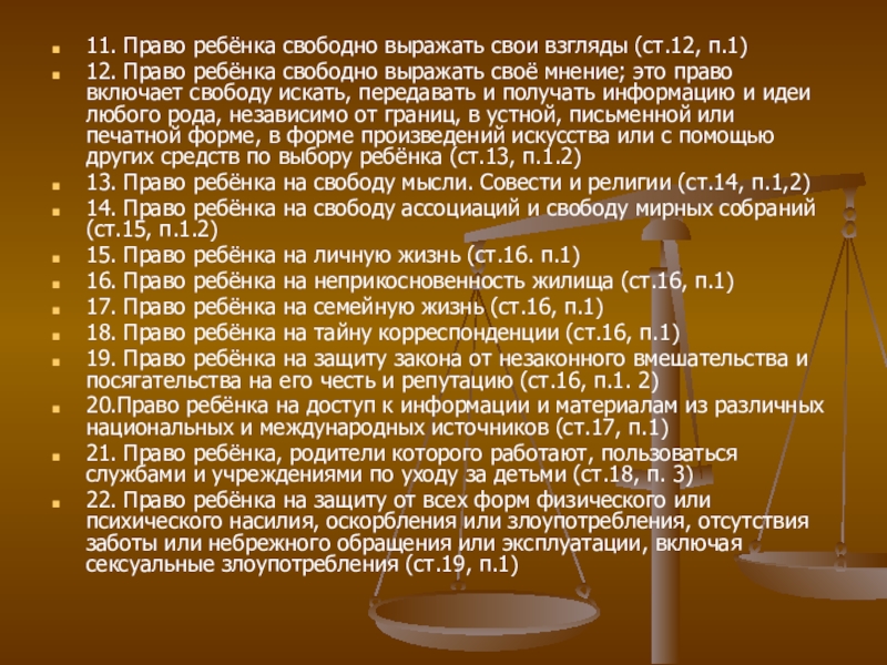 Слайд 711. Право ребёнка свободно выражать свои взгляды (ст.12, п.1)