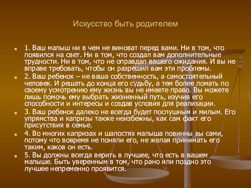 вами. Ни в том, что появился на свет. Ни в том, что создал вам дополнительные трудности. Ни в том, что не оправдал вашего ожидания. И вы не вправе требовать, чтобы он разрешил вам эти проблемы.