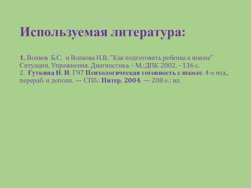 2. Гуткина Н. И. Г97 Психологическая готовность к школе. 4-е изд., перераб. и дополн. — СПб.: Питер, 2004. — 208 е.: ил.