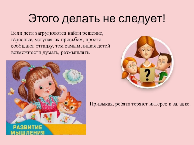 Нужны знания, специально подводящие ребят к отгадыванию загадок определённого содержания.