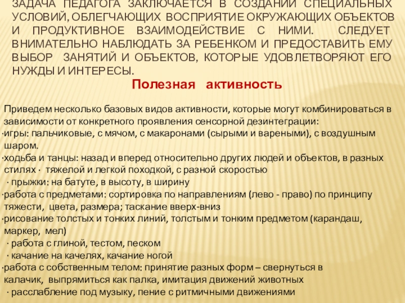 зависимости от конкретного проявления сенсорной дезинтеграции: