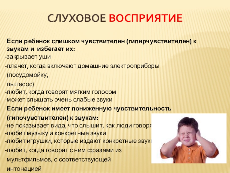 Если ребенок слишком чувствителен (гиперчувствителен) к звукам и избегает их: