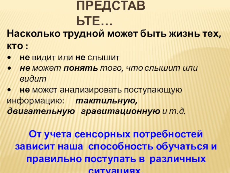 От учета сенсорных потребностей зависит наша способность обучаться и правильно поступать в различных ситуациях.