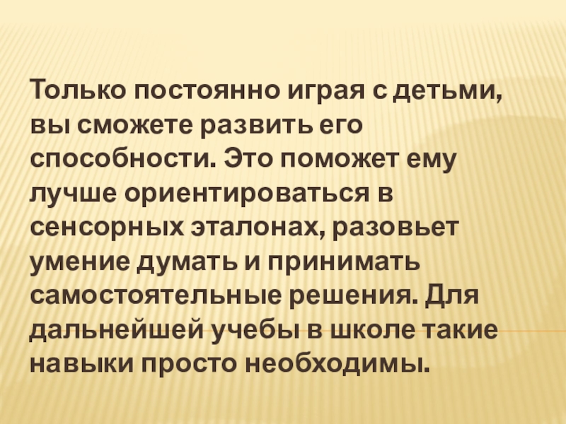 Слайд 29Только постоянно играя с детьми, вы сможете развить его способности. Это