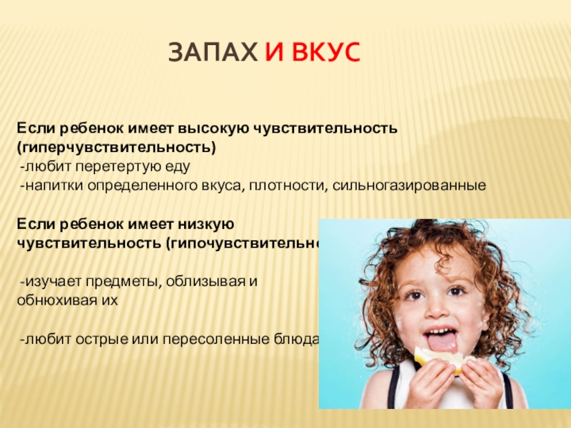 Если ребенок имеет: Гипочувствительность (пониженную чувствительность)