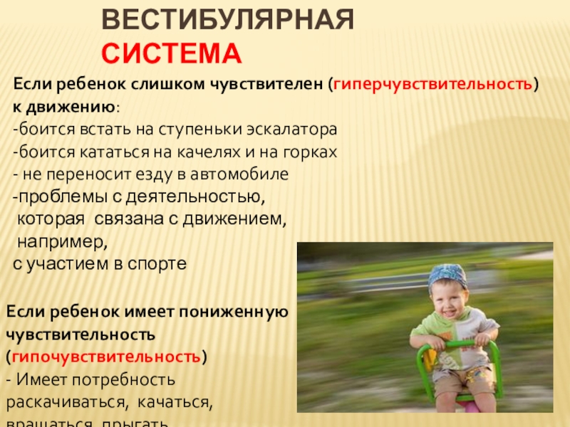 Если ребенок слишком чувствителен (гиперчувствительность) к движению: