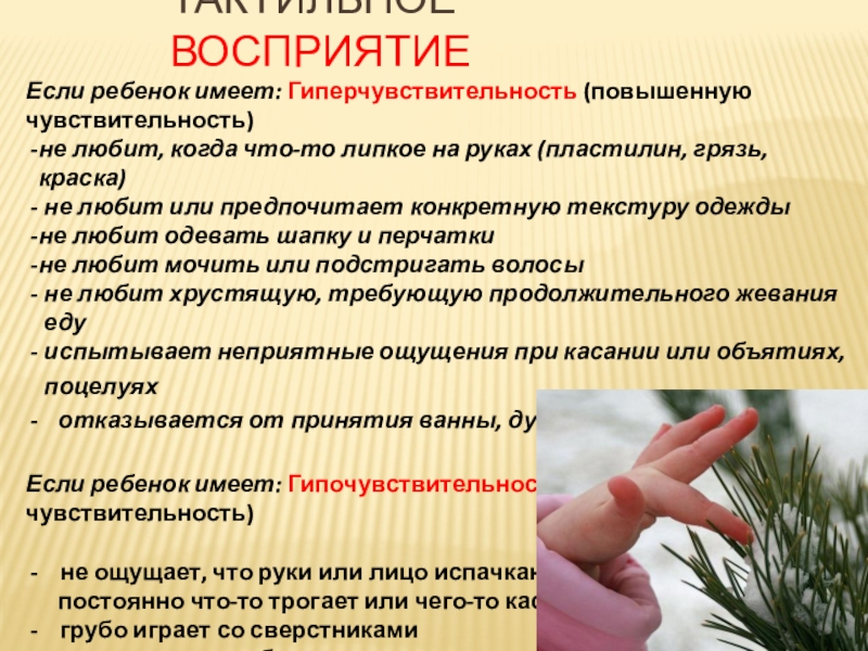 Если ребенок имеет: Гиперчувствительность (повышенную чувствительность)