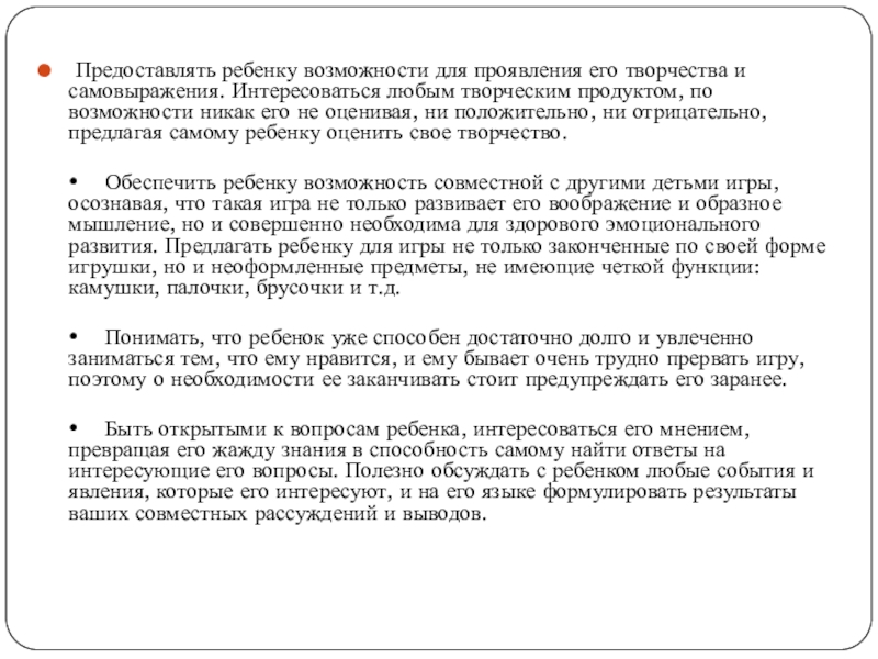 Предоставлять ребенку возможности для проявления его творчества и самовыражения. Интересоваться