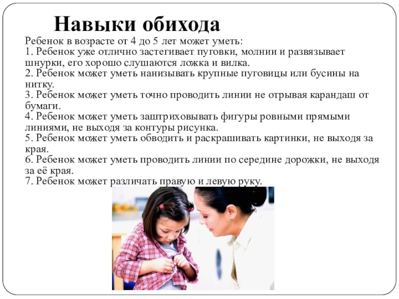 Ребенок в возрасте от 4 до 5 лет может уметь: