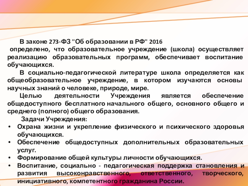 и образовательного учреждения.