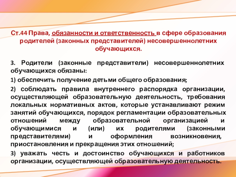 3. Родители (законные представители) несовершеннолетних обучающихся обязаны: