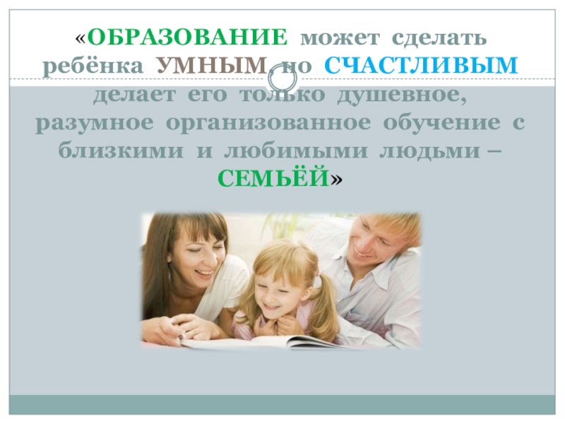 Слайд 33«ОБРАЗОВАНИЕ может сделать ребёнка УМНЫМ, но СЧАСТЛИВЫМ делает его только душевное,