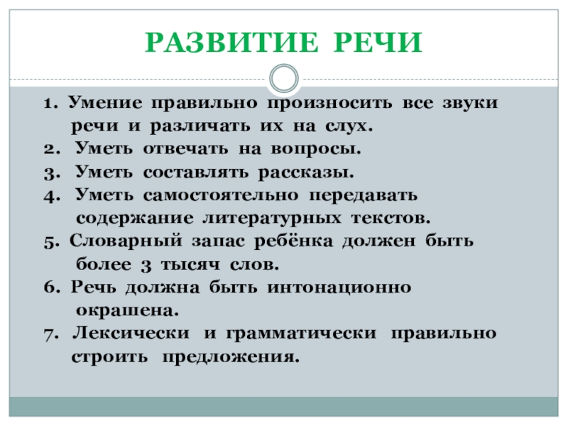 1. Умение правильно произносить все звуки