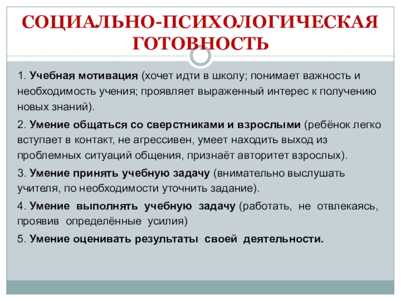 Слайд 5СОЦИАЛЬНО-ПСИХОЛОГИЧЕСКАЯ ГОТОВНОСТЬ