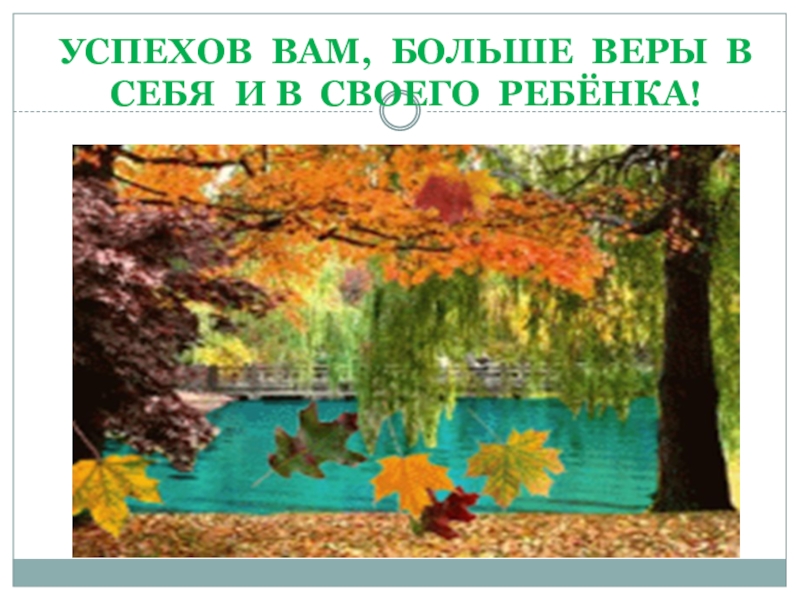 Слайд 34УСПЕХОВ ВАМ, БОЛЬШЕ ВЕРЫ В СЕБЯ И В СВОЕГО РЕБЁНКА!