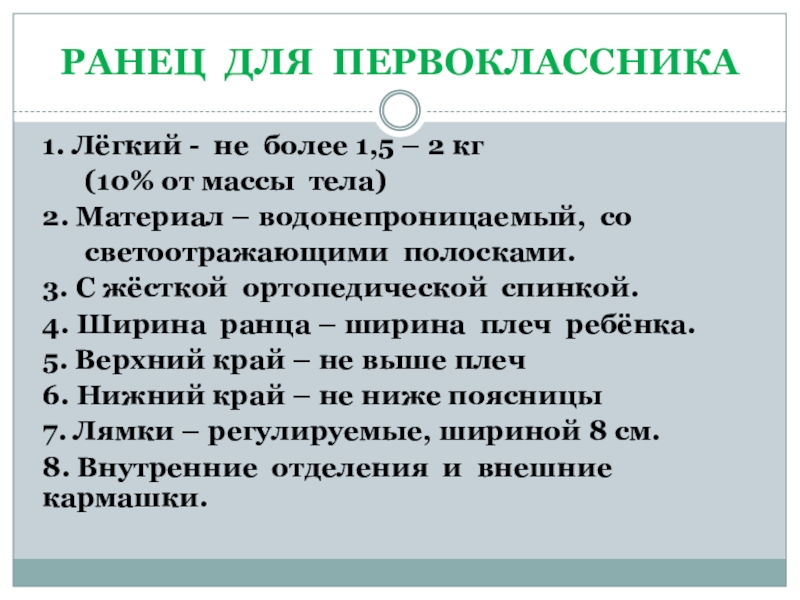 Слайд 29РАНЕЦ ДЛЯ ПЕРВОКЛАССНИКА