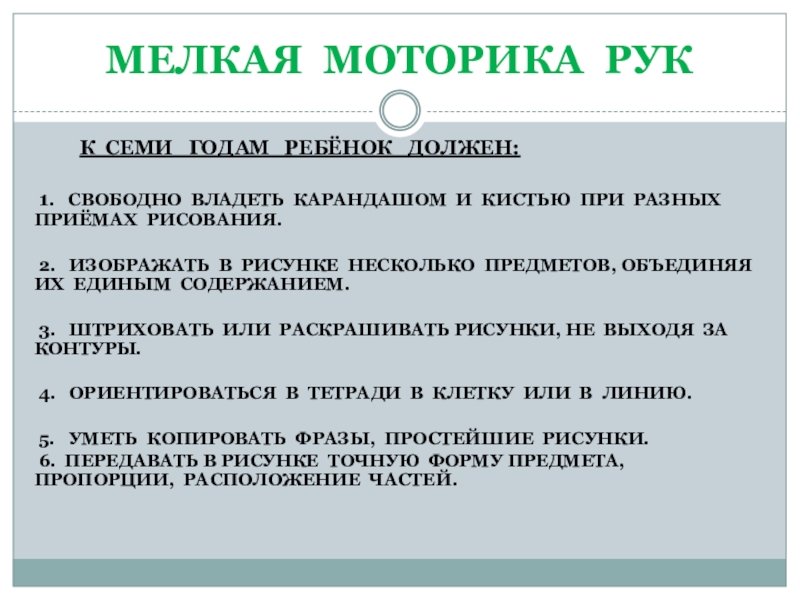 К семи годам ребёнок должен: