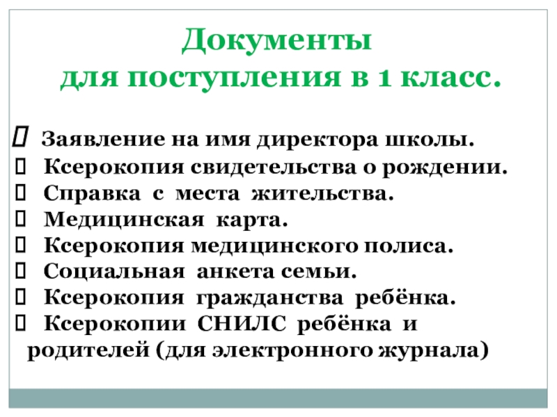 для поступления в 1 класс.