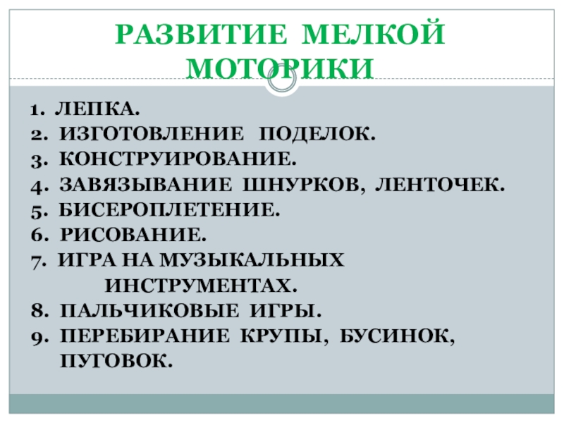 Слайд 22РАЗВИТИЕ МЕЛКОЙ МОТОРИКИ