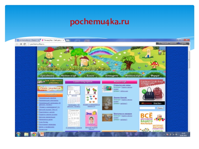 Это сайт презентаций, где можно хранить и обмениваться своими презентациями, докладами, проектами, шаблонами в формате PowerPoint с другими пользователями. Мы помогаем школьникам, студентам, учителям, преподавателям хранить и обмениваться учебными материалами.