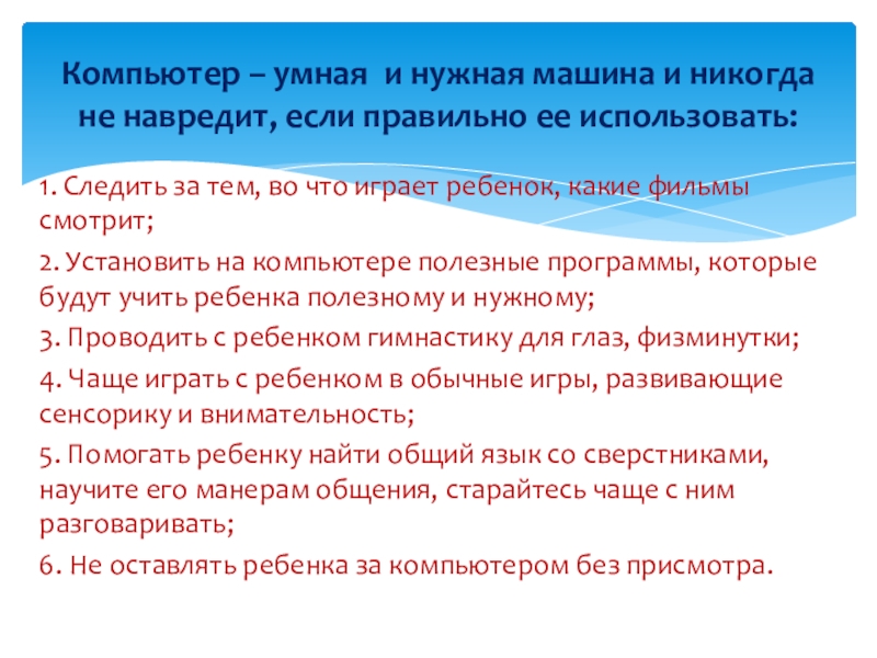Компьютер – умная и нужная машина и никогда не навредит, если правильно ее использовать: