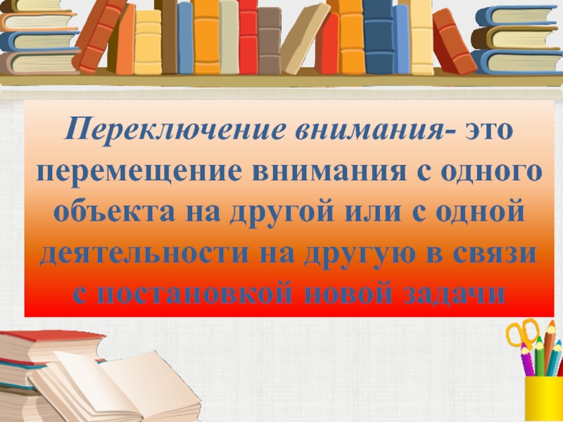 Слайд 12Переключение внимания- это перемещение внимания с одного объекта на другой или