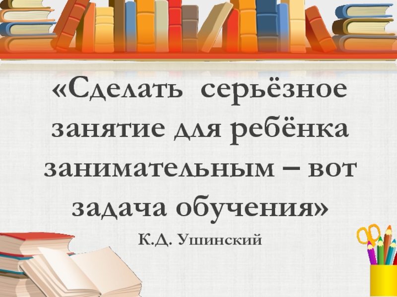 «Сделать серьёзное занятие для ребёнка занимательным – вот задача обучения»К.Д. Ушинский