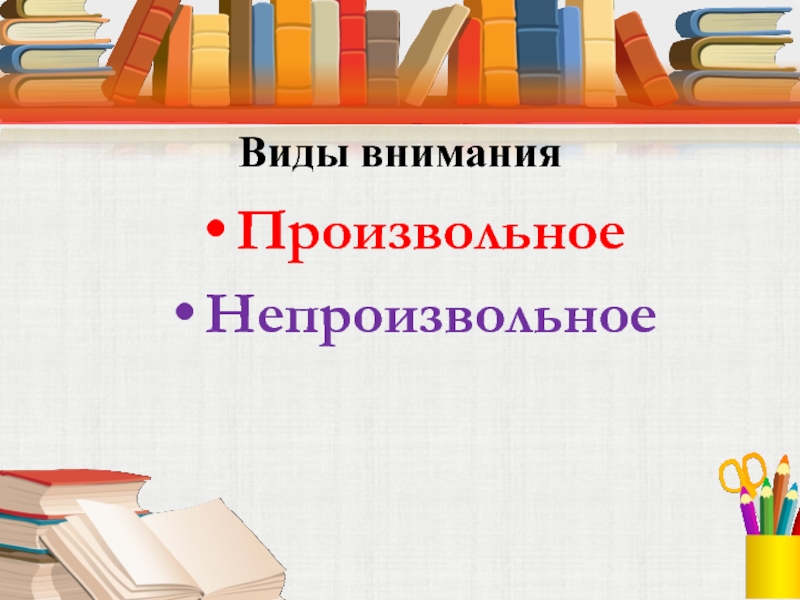 Виды вниманияПроизвольноеНепроизвольное